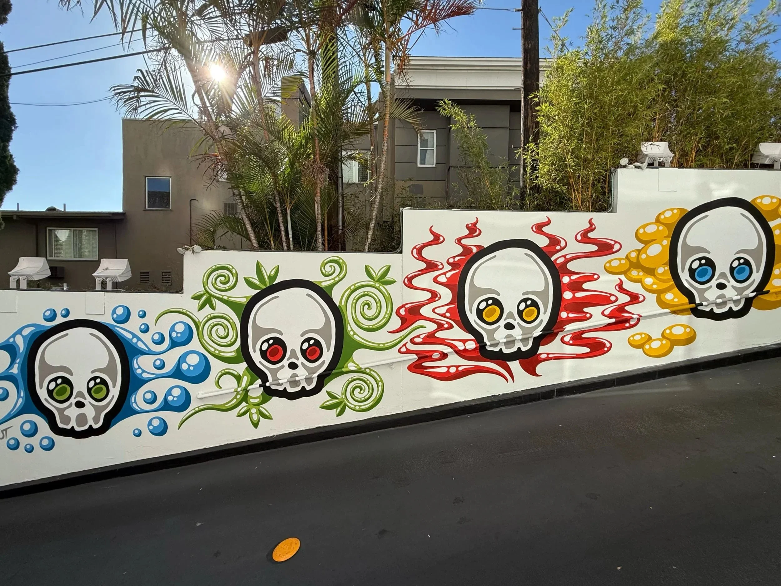 Calavera Elementos mural by Sküt on display at the entrance to SkyBar at Mondrian Los Angeles in West Hollywood