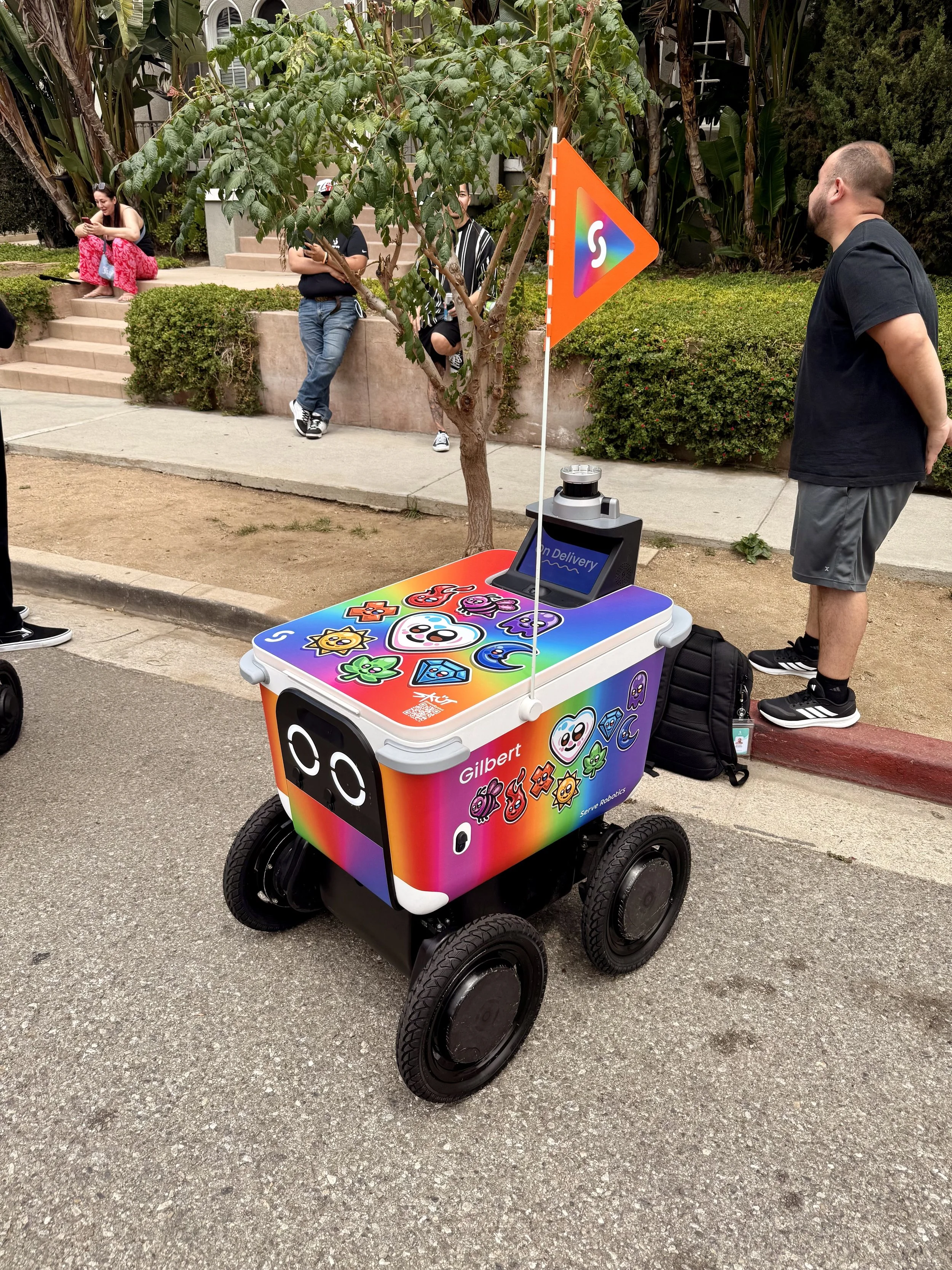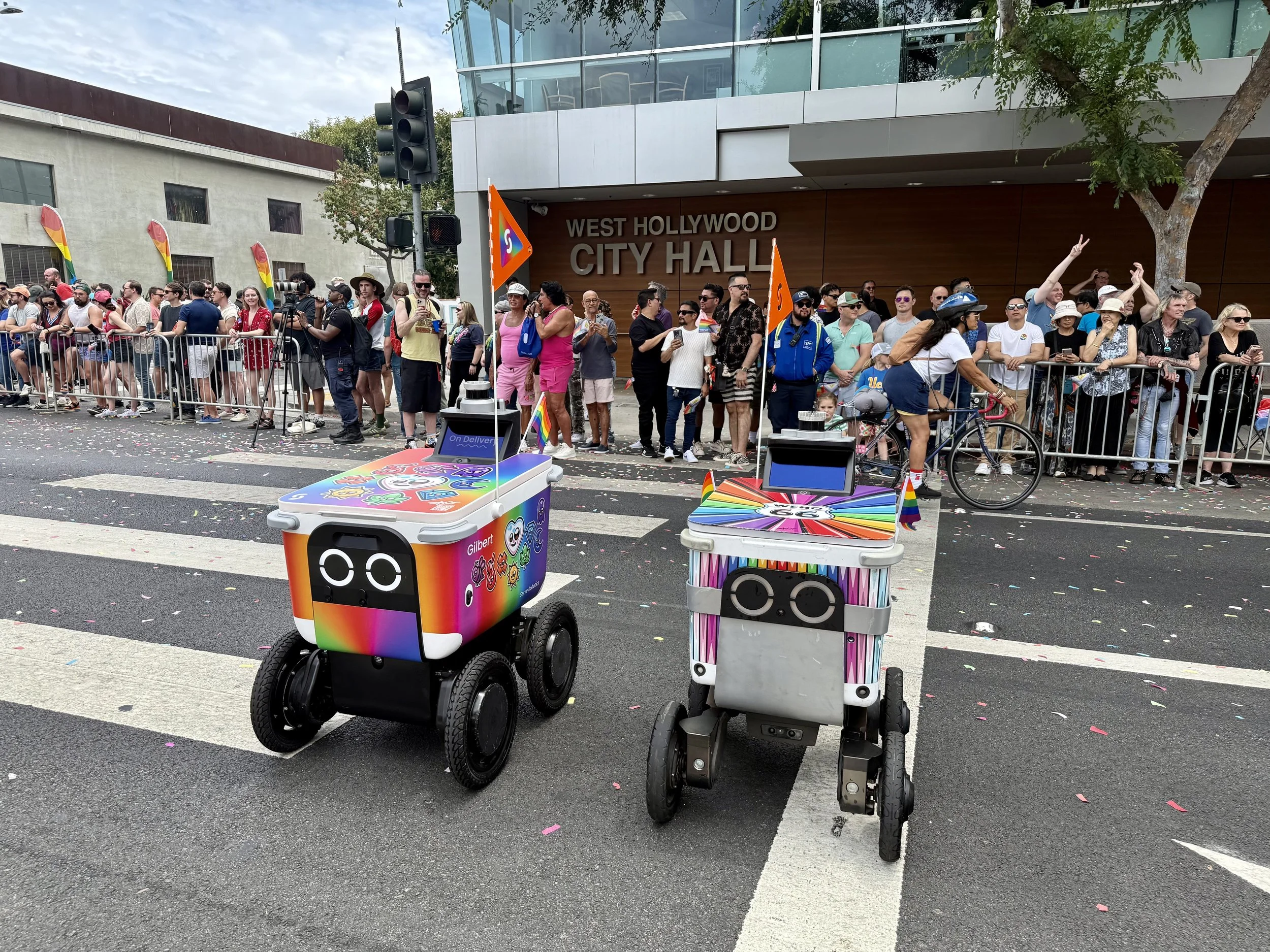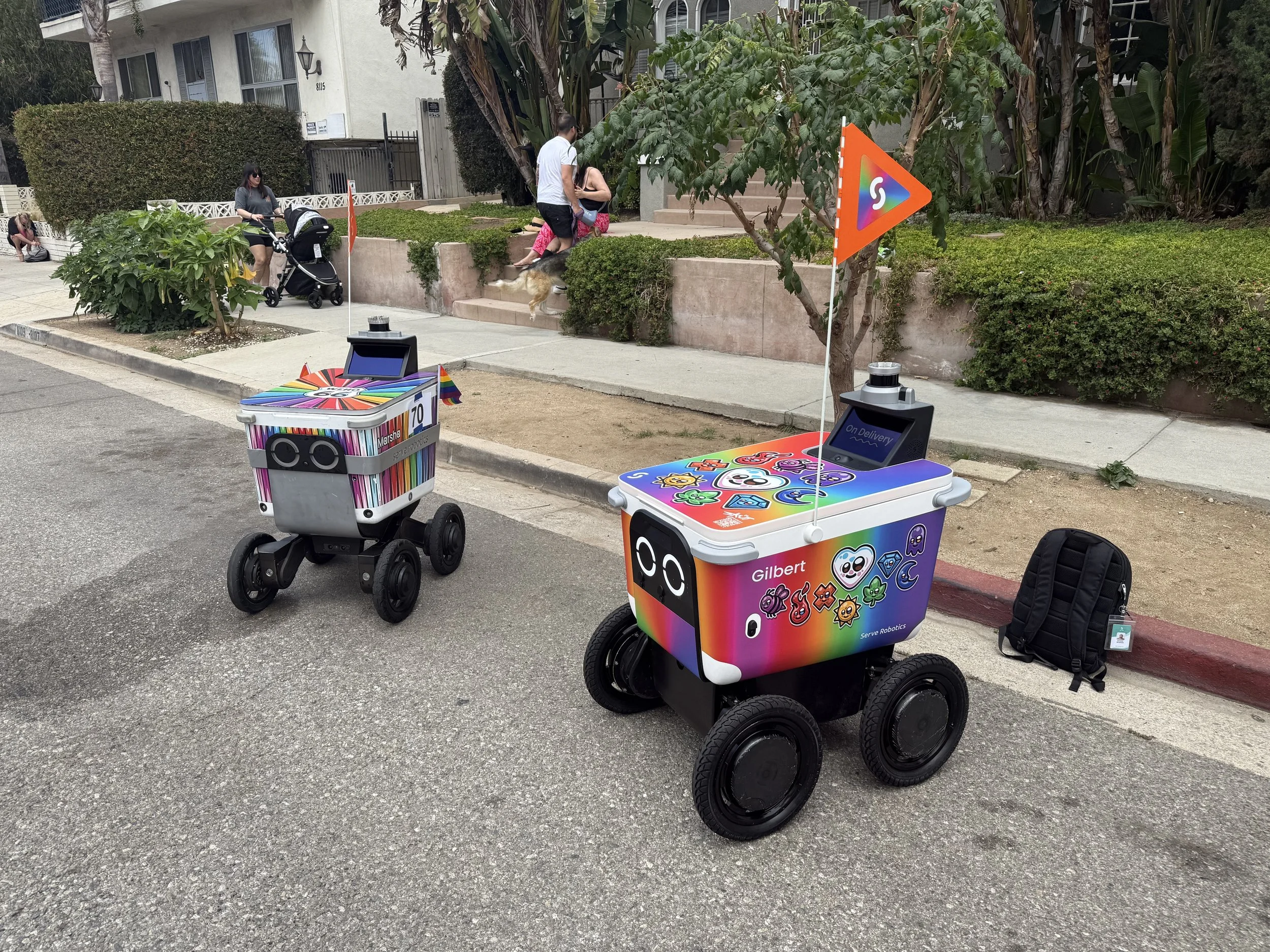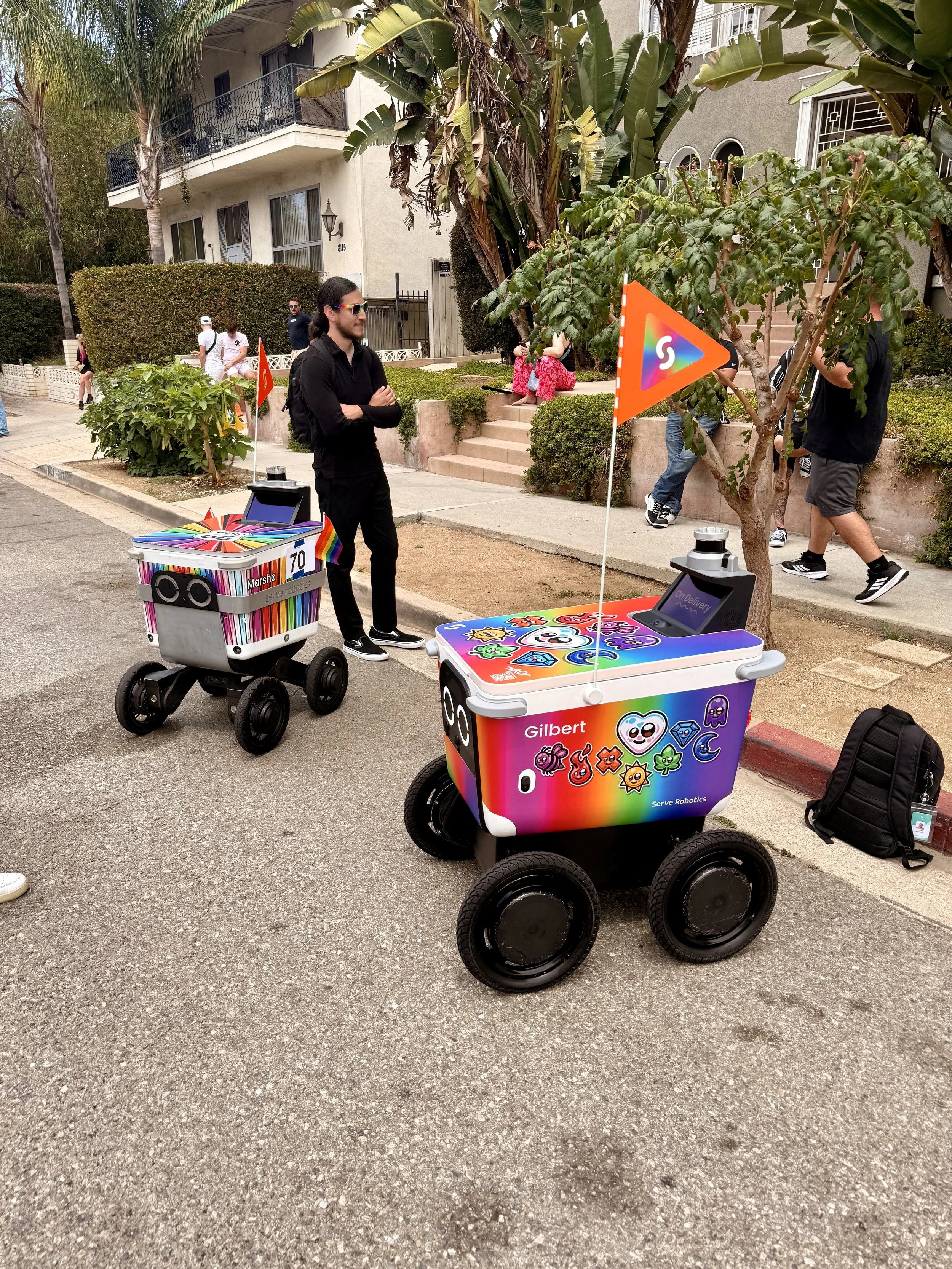 West Hollywood’s streets just got more colorful. Serve Robotics has unveiled “Gilbert,” a newly designed delivery robot by local artist Sküt, joining his earlier creation, “Marsha.” Together, the two robots celebrate LGBTQ+ icons Marsha P. Johnson and Gilbert Baker, bringing art, history, and technology together in motion.