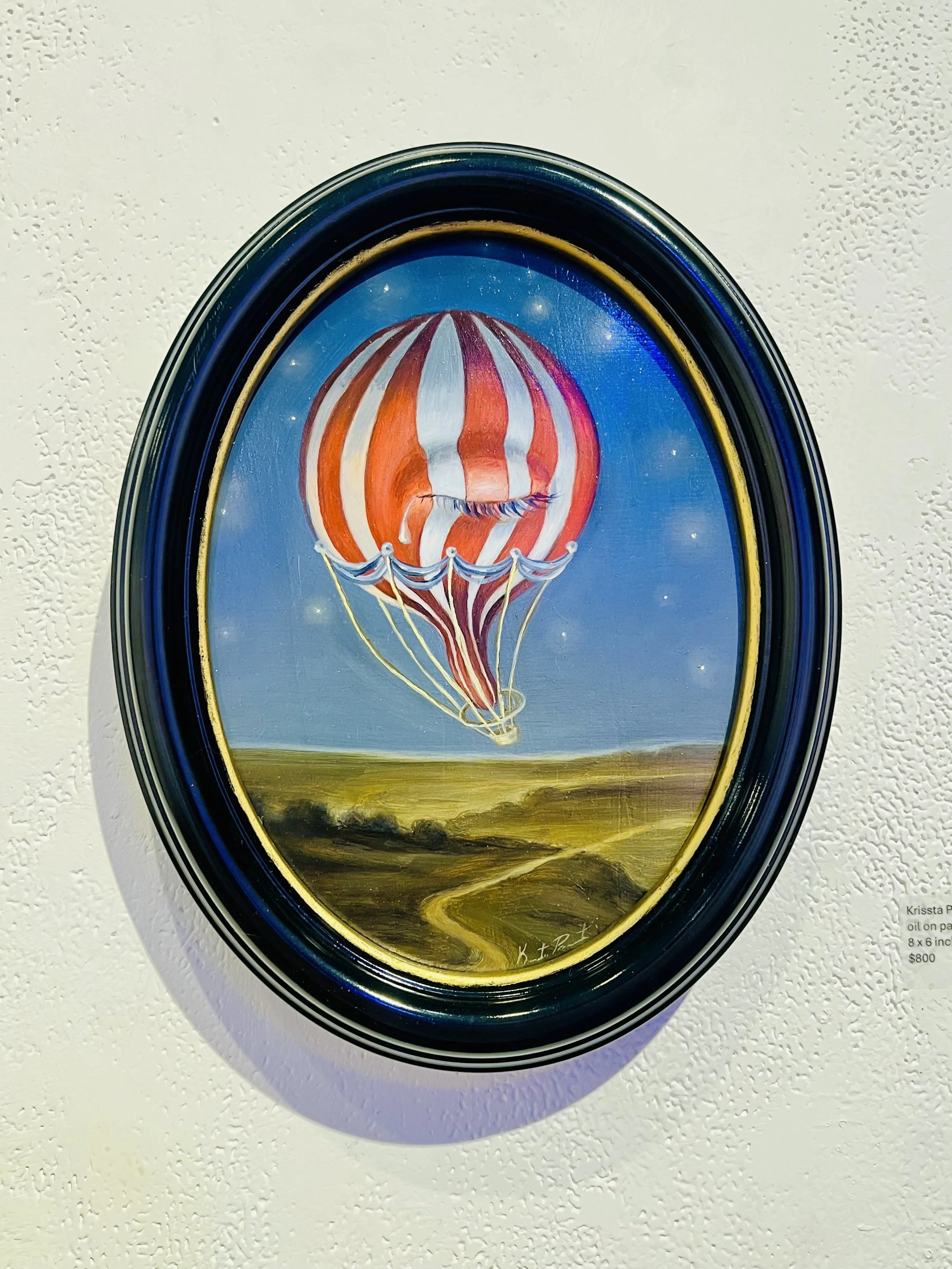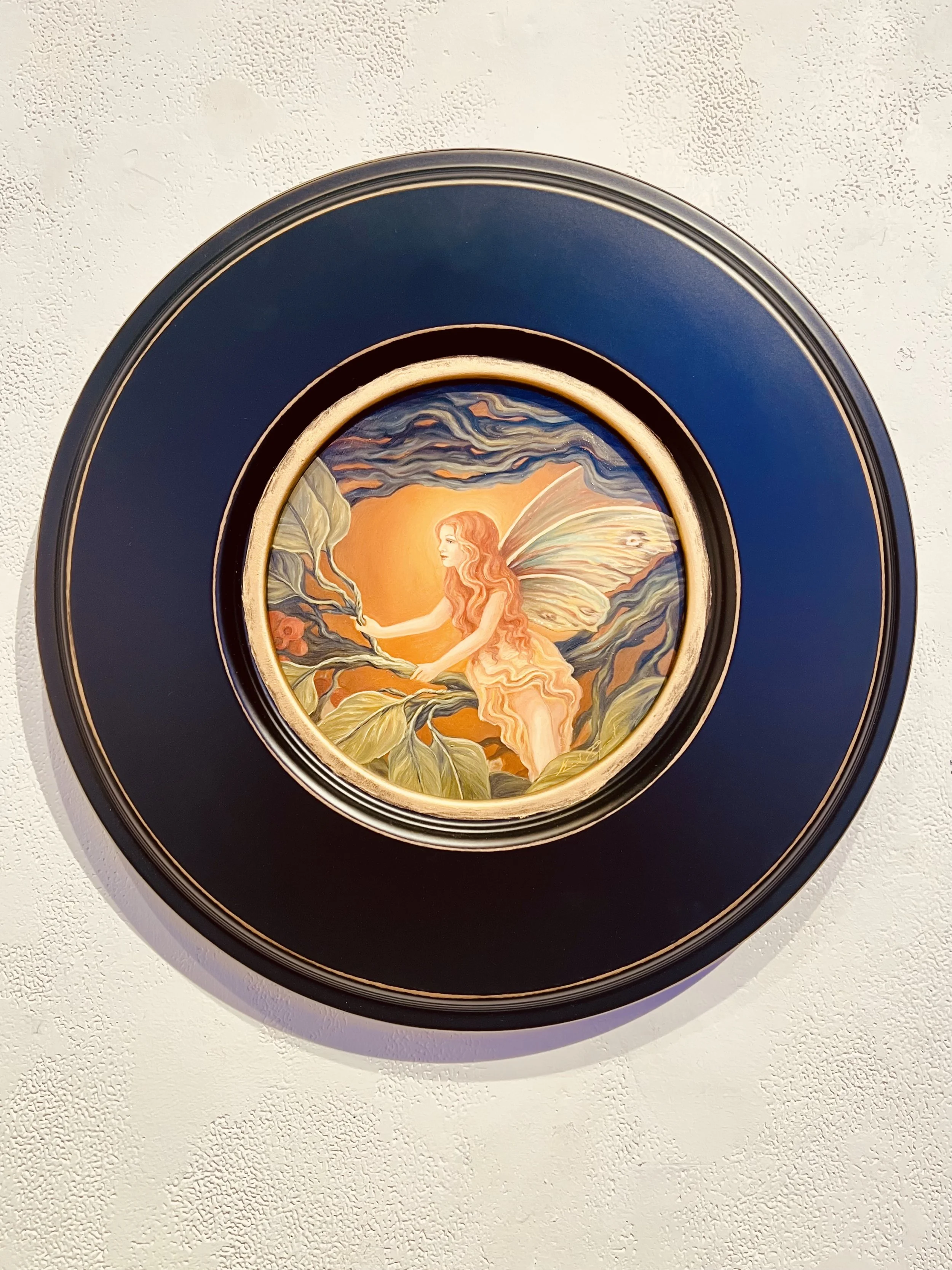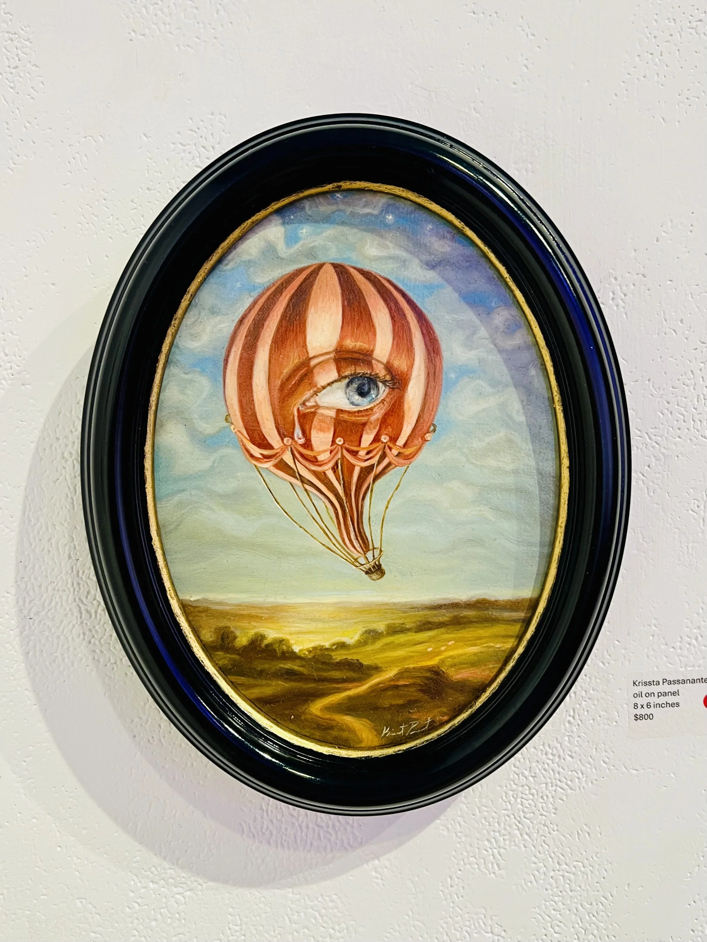 Krissta Passanante paints delicate fairies, gnomes and mushrooms in the fairy tale lighting we all imagined in our childhoods. Anthropomorphic figures and plants evoke fantasy and a dream-like quality.